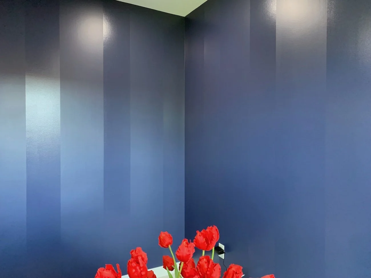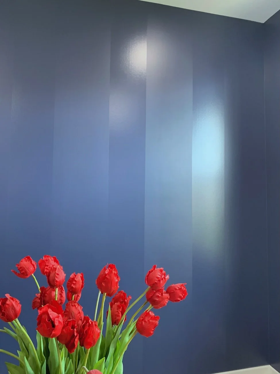 Using Venetian plaster is what makes the movement of color you see. We also used a unique approach to the wax which seals Venetian to create a mottling in the shine – which you can see in the last photo below.