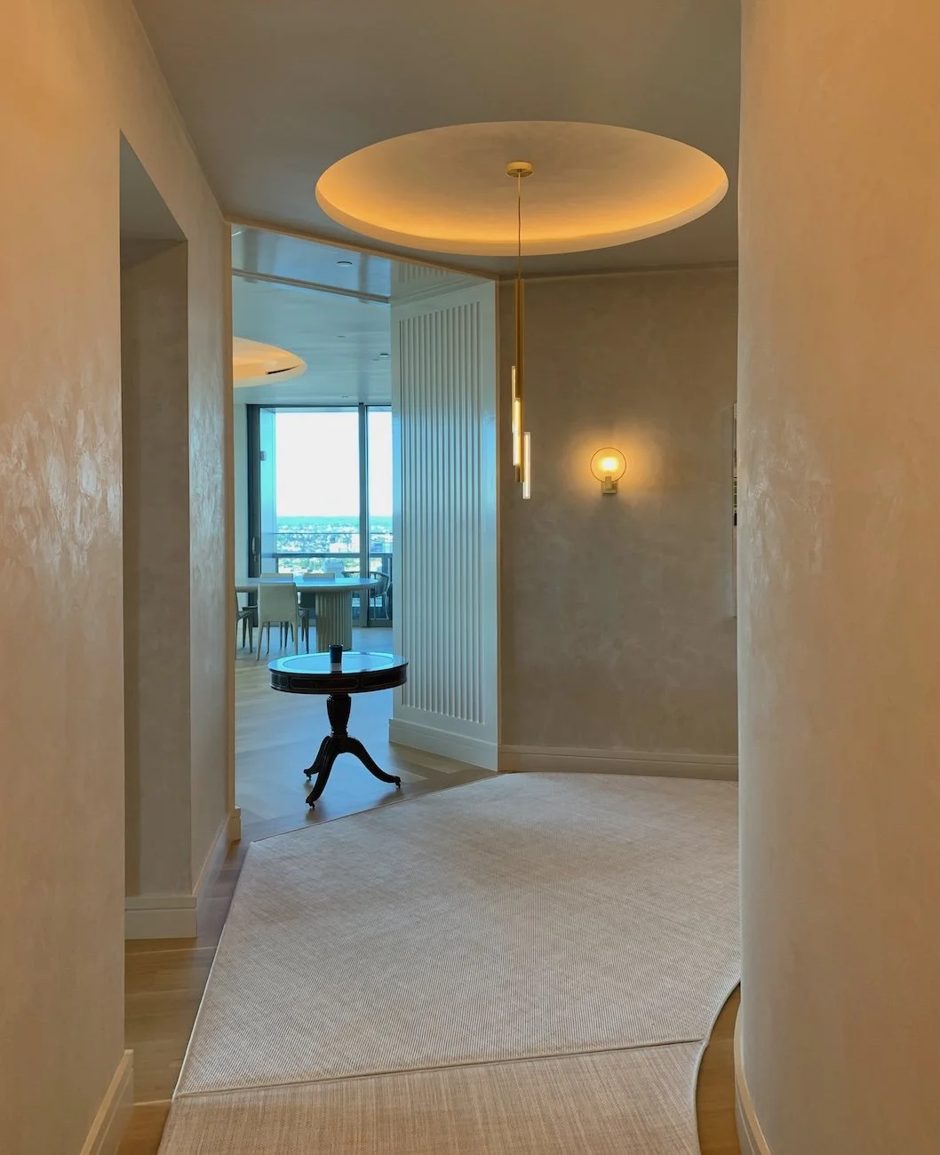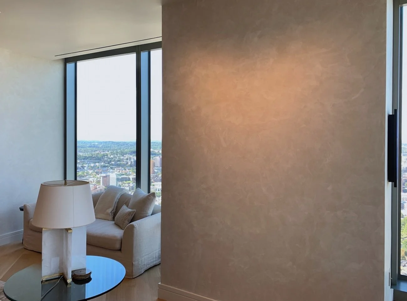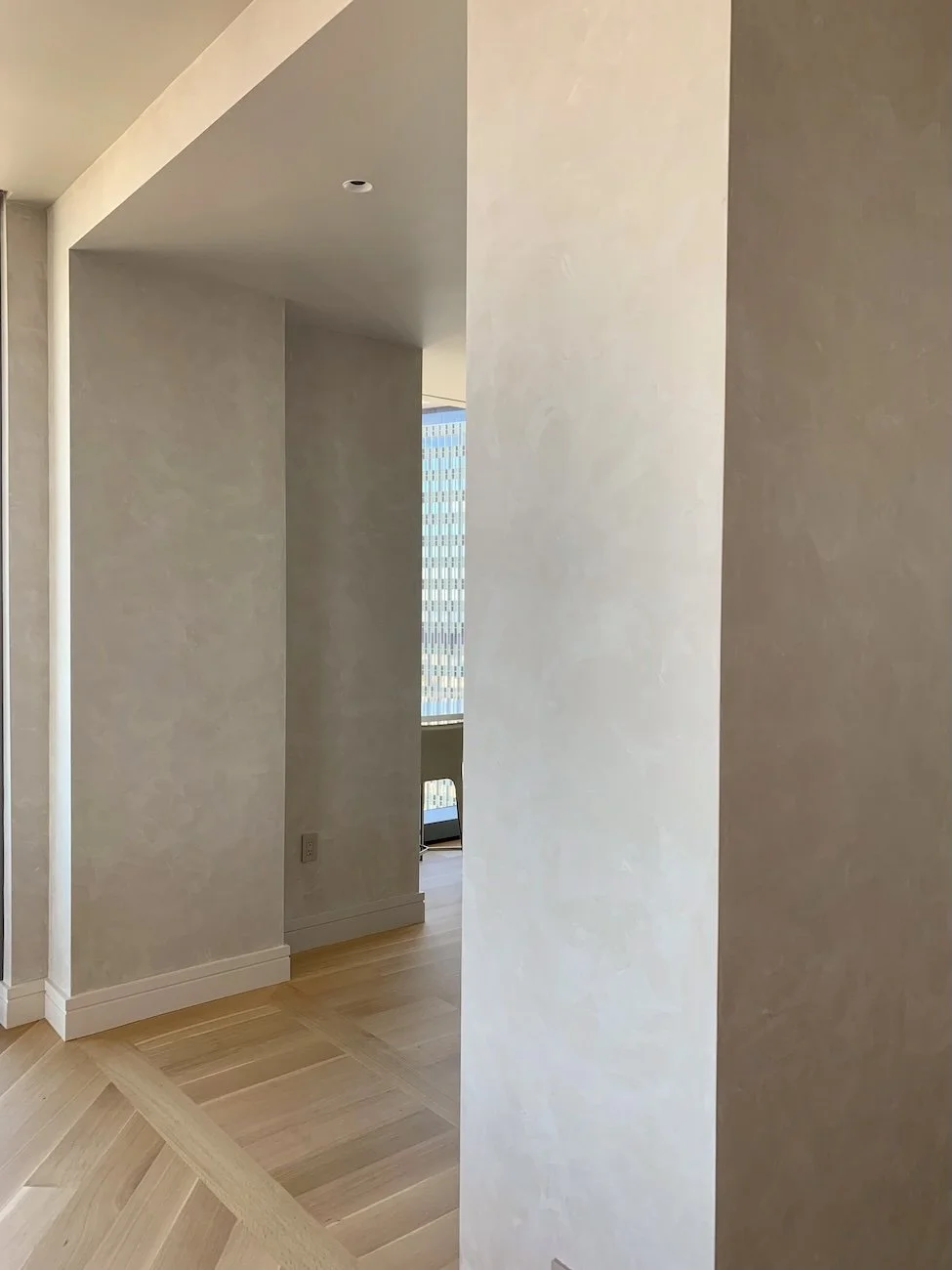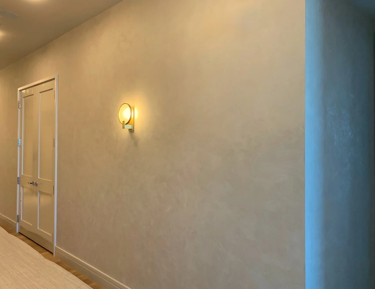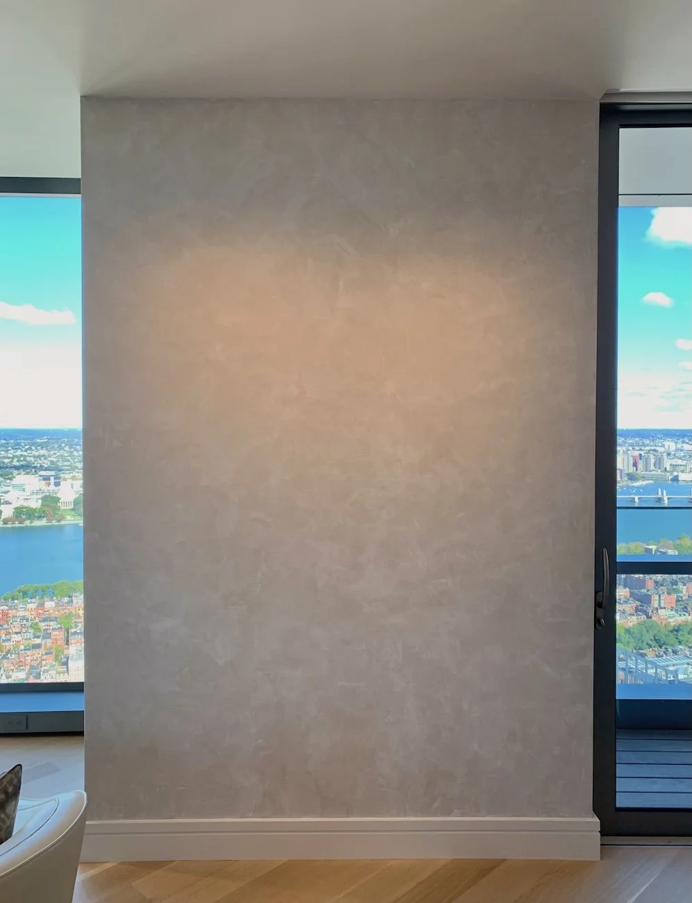Layering 2 colors of Venetian plaster, we produced this look to accomplish the goal of being subtle enough to be the backdrop for all of these rooms, but still unique enough generate interest and depth - elevating the entire space. Working with the designer, we picked shades of taupe and off-white that had just enough warmth to compliment the other colors in the space, while still being neutral enough to make sure the art, furniture and lighting touches really pop. We wanted the walls to be both the hero and the supporting cast!